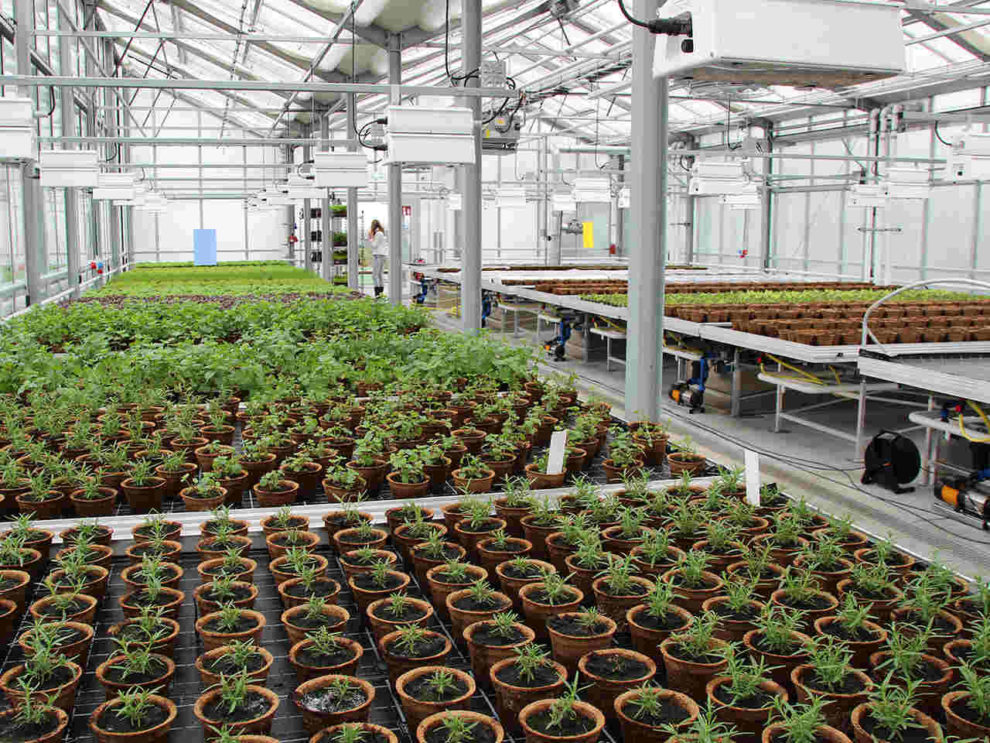 Auch Gewächshäuser sind eine Option. Diese können mit Solarenergie oder der Abwärme der Gebäude ganzjährig genutzt werden. Für die Bewässerung eignet sich Regenwasser genauso wie gefiltertes Abwasser der Haushalte.